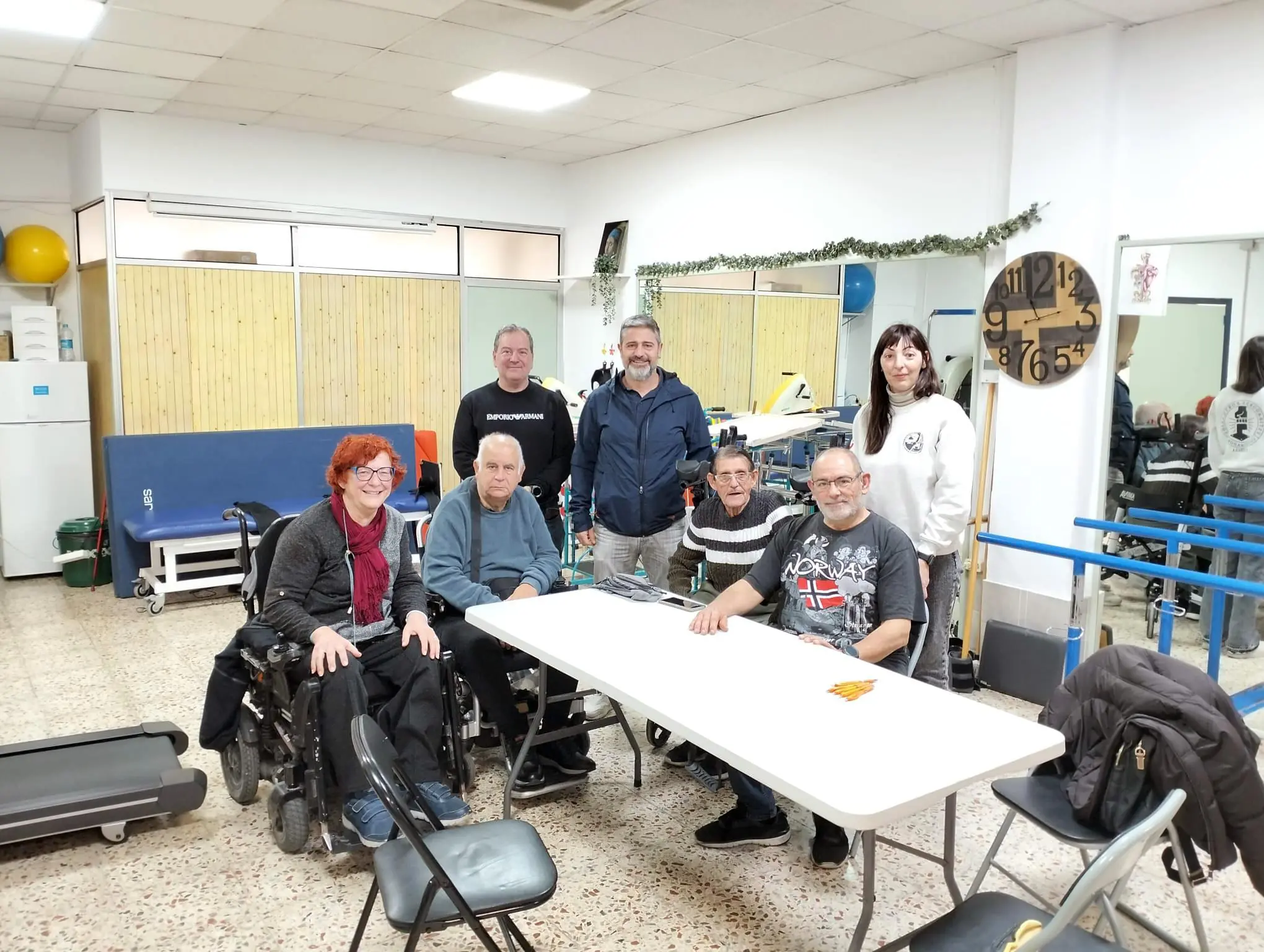 De pie, de izquierda a derecha: Humberto Nácher, Francisco Masià y Arantxa Vivó, de Coordinadora Solidaria Valencia. En primera fila: Ana Soriano, Ricardo Ortega, Francisco Latorre y José Ramón García, de ACVEM.